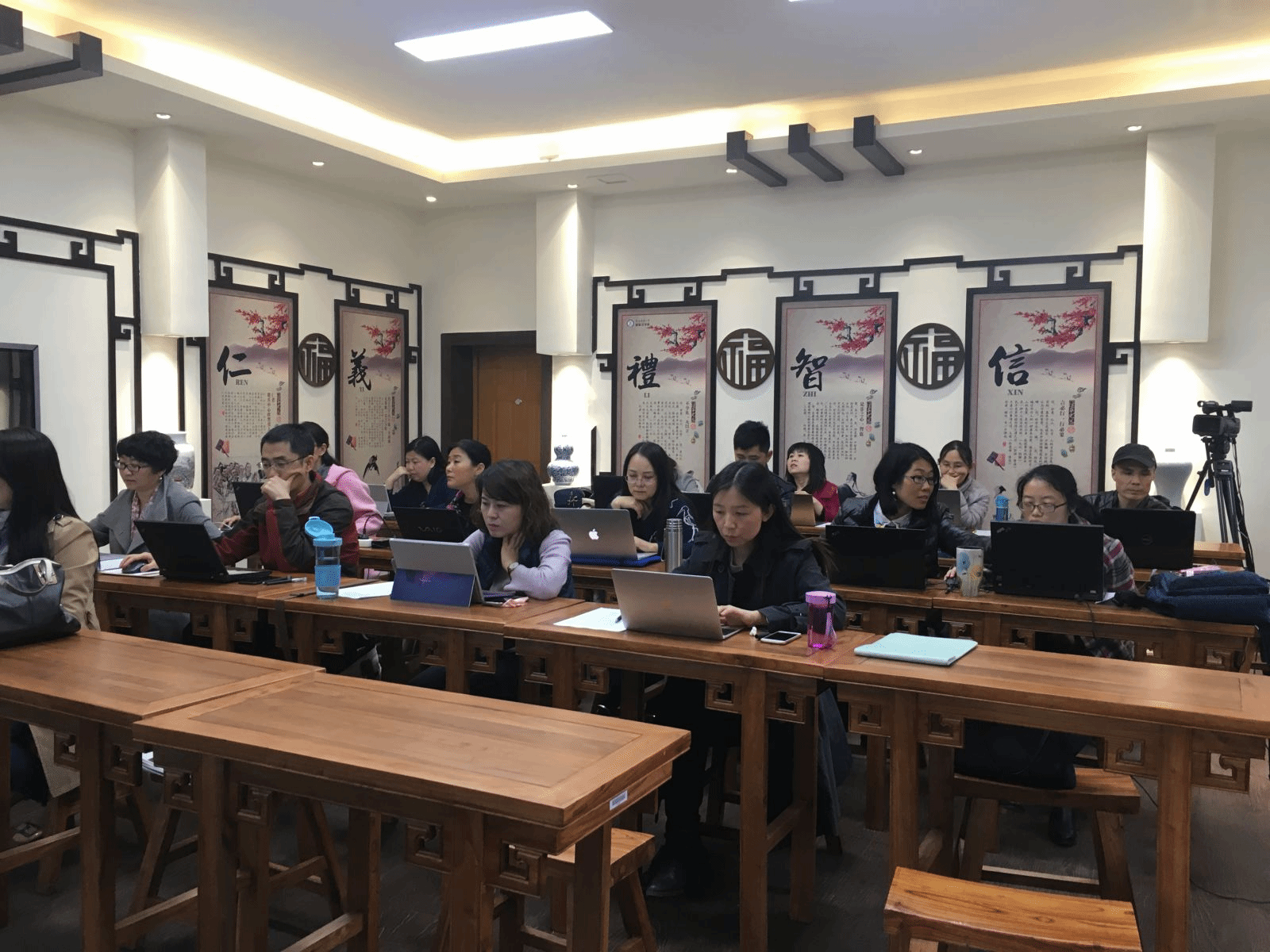 也是春意浓浓,一派勃勃生机!在教学二楼东侧的“智慧课堂”里,已经是座无虚席,这里正在进行的是“互联网+教育”背景下的教学能力创新与提升的师资培训。
