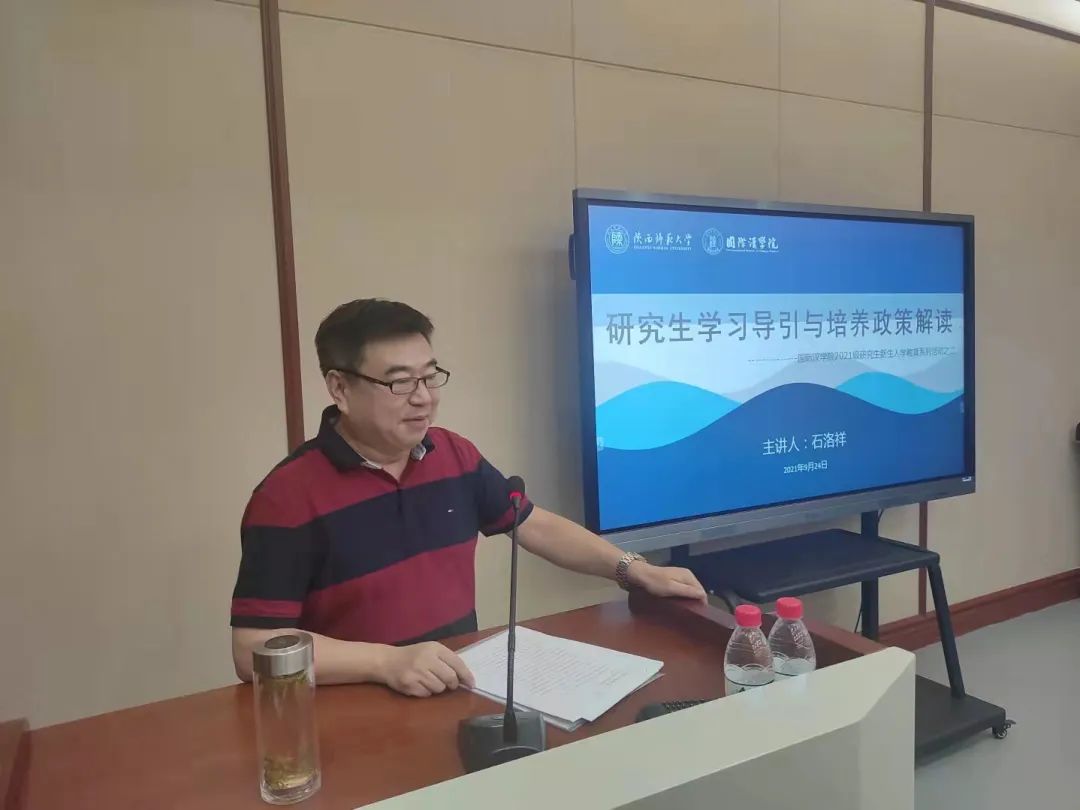 最后,石洛祥向2021级新生表达衷心的祝愿,希望同学们能够德智体美劳全面发展,顺利完成学业,度过充实的研究生生活。