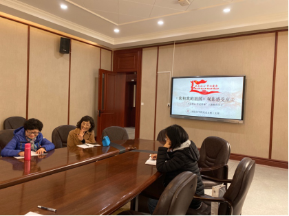 首先,支部书记冯雪俊对前期教工支部集体观影活动进行了回顾,并指出此次观影感受交流既是对观影活动的一次总结和升华,也是支部“不忘初心、牢记使命”主题教育的重要内容。