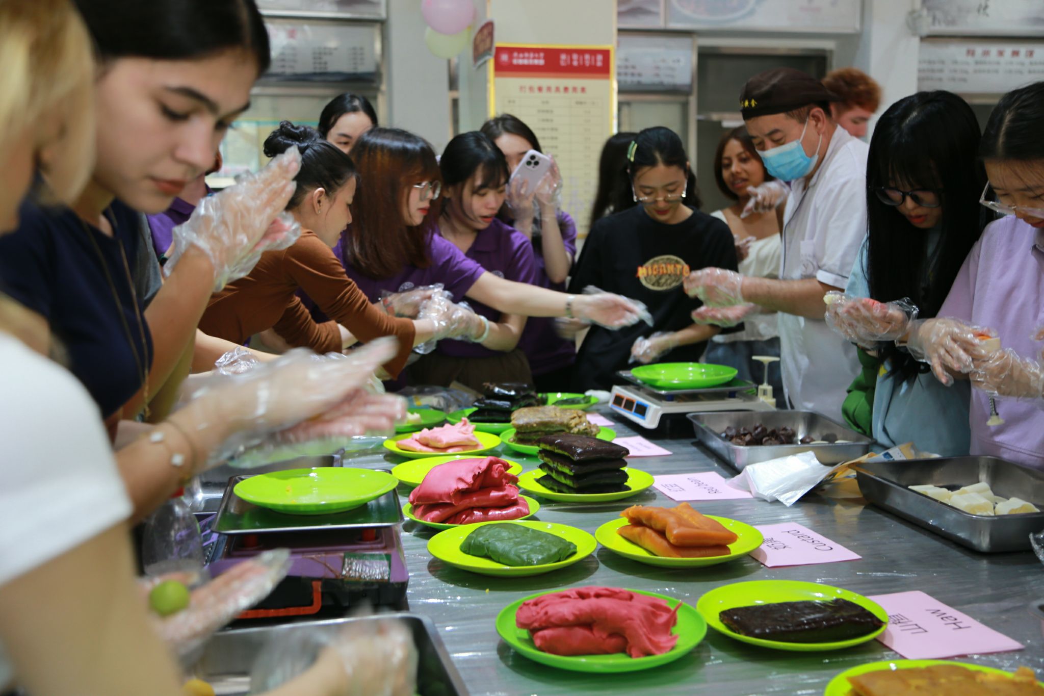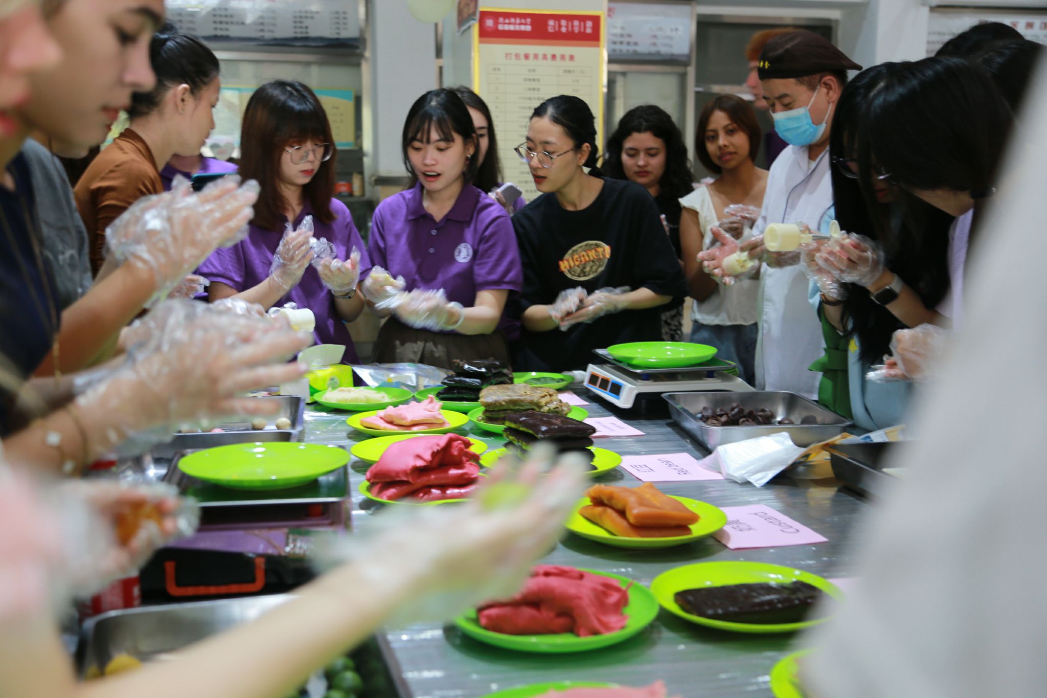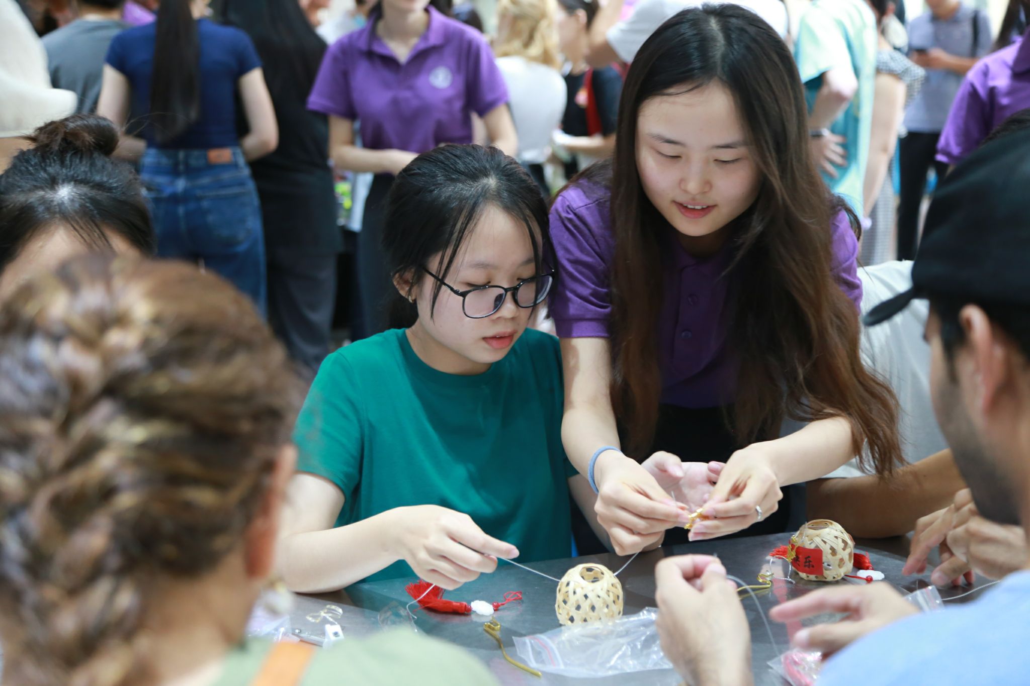 随后,活动进入了分组制作环节。中外学生们在小灯笼和月饼的制作过程中,亲身体验了中秋节的传统习俗,也增进了彼此之间的友谊和合作。他们相互帮助、共同学习,将一个个精美的小灯笼和月饼呈现在大家眼前,展现出了中外文化的交融与碰撞。