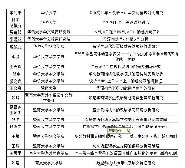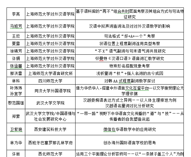 第九届世界华语文教学研究生论坛将于2017年1月14日-19日在陕西西安陕西师范大学举行。经过主办单位学术审议小组的评审,现决定邀请以下研究人员参加此次论坛。(台湾地区论文不含在内,请关注世界华语文教育学会通知)